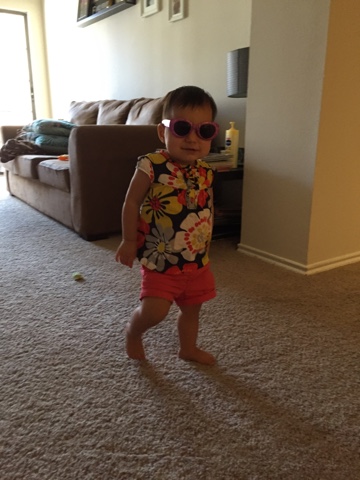 She is an official walker. I was a little worried how her walking would affect my everyday life. I thought I would have to keep a closer eye on her- but most everything in our house is already kid/baby proof so that wasn't a concern. I wasn't sure how Arizona would be around a walking/wobbling Brielle. AZ was really excited when Brielle took her first steps but overestimated how unbalanced she still is. Brielle still hits the floor a lot and some of those times are when AZ is running full speed and pushes her. It's that sisterly love I tell ya.